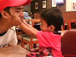 aiip spiking of sejok prot ni kan...skang ni si Aisy...kalau aku smayang die mula la tarik lagi satu sjadah...sambil ckp...Aisy bayang...(sembahyang la tu)..lepas tu aku dah start ajar dia alif ba taa....die kejap ikut kejap lari la..stended ah budak2 besar tu..tp aku suke bila Aisy cepat melekatkan apa yang aku ajo kat kepala dia..cthnye aritu lalu kat petronas..skali je aku ckp..Aisy..tu petronas ..sampai skang pun kalau lalu situ die akan bagitau aku..ibu..tu petronas tu ibu...kewl....tp yg problem nye..die still ingat kereta ferarri kat shell..sampai la skang ni kalau p shell..die bleh mengarah aku pulak...ibu..beli kete ibu...kat situ....(ingat ibu ni tokei balak ke apa??)